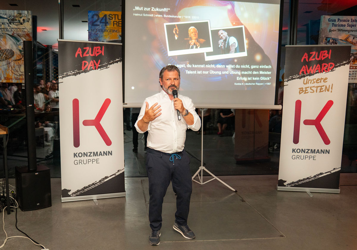 Auch Geschäftsführer Oliver Rennig blickte mit großer Begeisterung auf die Veranstaltung zurück: „Der diesjährige AZUBI DAY am Bodensee war ein eindrucksvolles Signal dafür, wie lebendig unsere Unternehmenskultur ist. Mit Veranstaltungen wie dieser schaffen wir Räume, in denen sich unsere Azubis vernetzen, sich austauschen und gemeinsam stolz auf ihre Erfolge blicken können. Die Verleihung der AZUBI AWARDS hat erneut gezeigt: In der KONZMANN Gruppe sind außergewöhnliche Nachwuchstalente zuhause, die mit Begeisterung, Ideen und Tatkraft ihre Zukunft – und die unseres Unternehmens – gestalten wollen. Ein herzliches Lob geht an die Kolleginnen der HR-Abteilung, die mit ihrem Anspruch an Ausbildungsqualität, Wahrnehmung und Inhalte und mit großem Engagement erneut eine rundum gelungene und einzigartige Veranstaltung ermöglicht haben. Darüber hinaus wäre ohne unsere Ausbilder, die mit ihrer täglichen Arbeit den Grundstein für diese beeindruckenden Erfolge legen, eine solche Entwicklung in den letzten Jahren nicht möglich gewesen. Genau dieser gemeinsame Spirit ist es, der uns langfristig erfolgreich macht und zeigt, was wir als KONZMANN Familie erreichen können.“