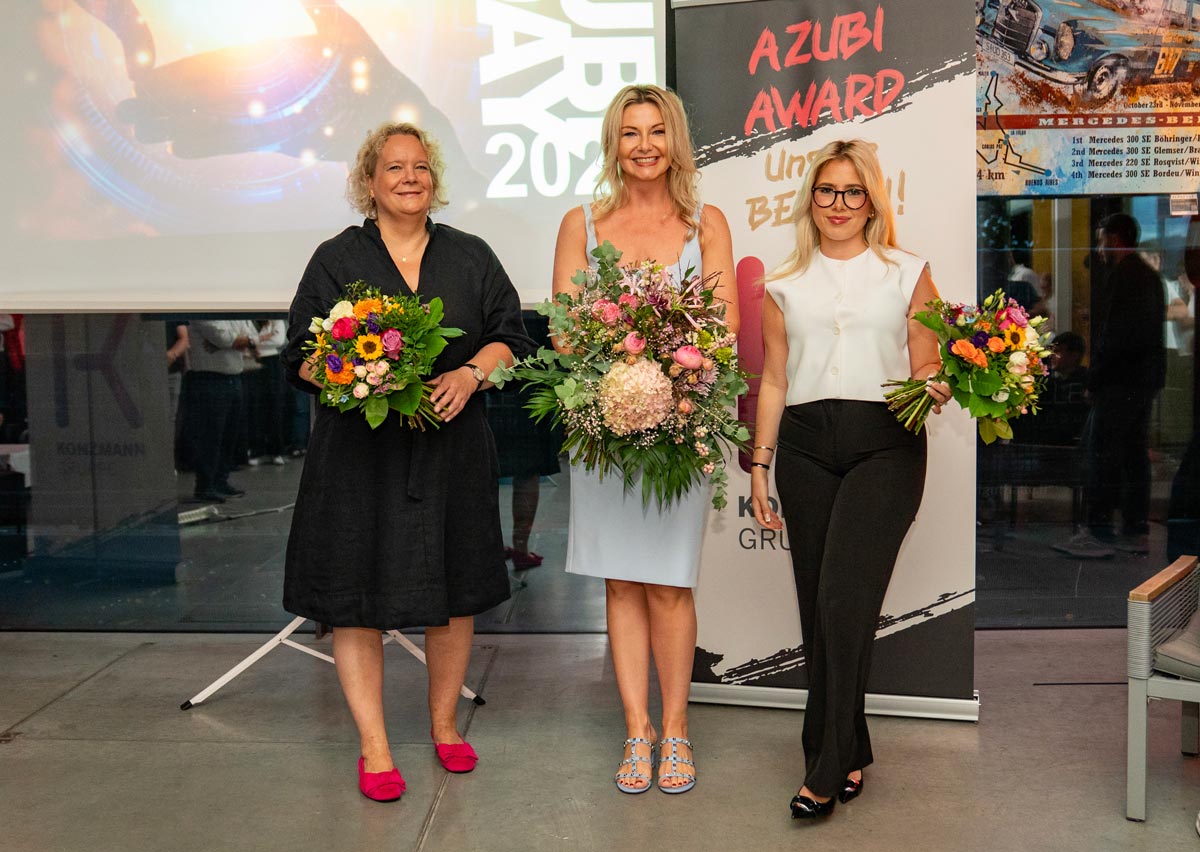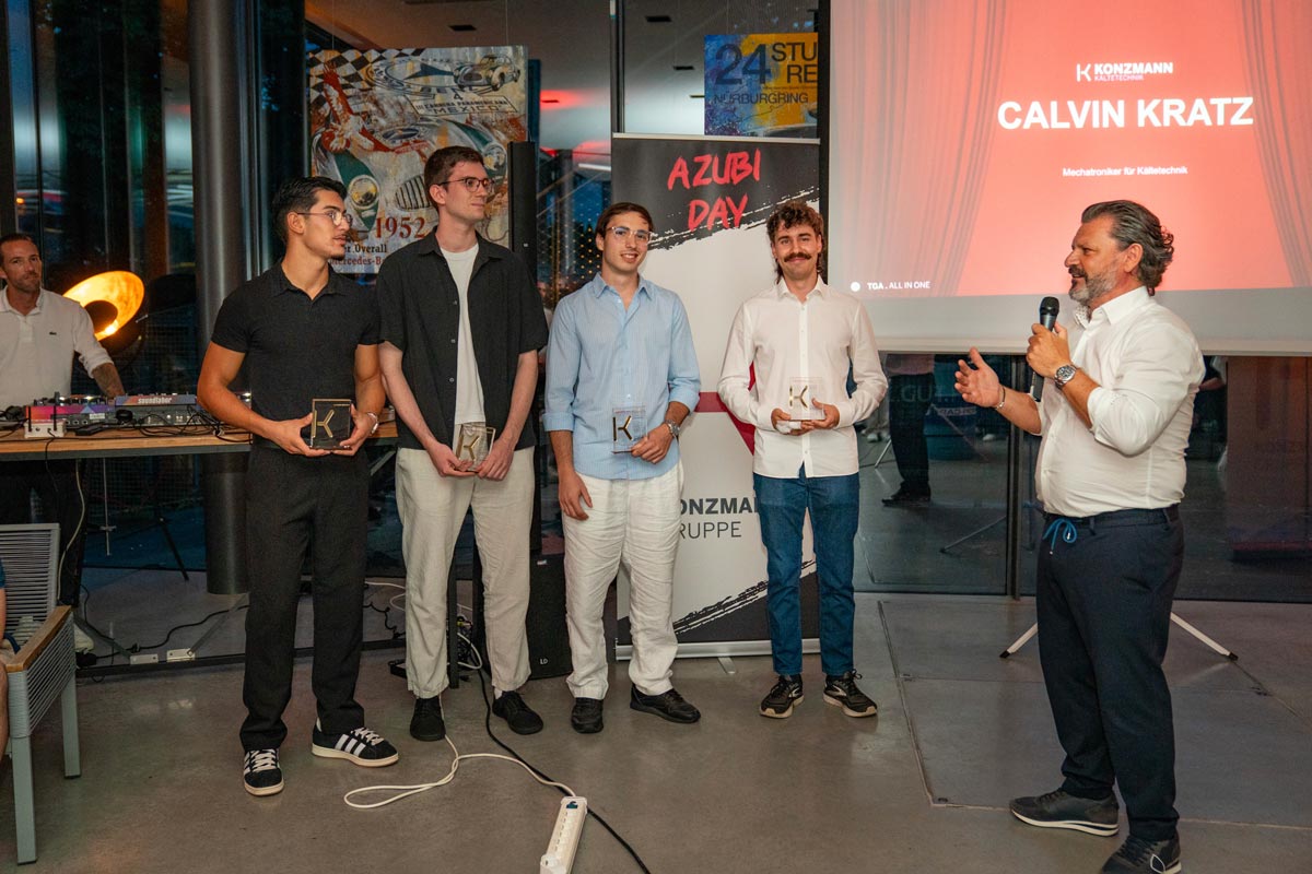 Ein Höhepunkt des Abends war die feierliche Verleihung der KONZMANN AZUBI AWARDS. Vier Nachwuchstalente wurden für ihr Engagement und ihre besonderen Leistungen nominiert und ausgezeichnet: