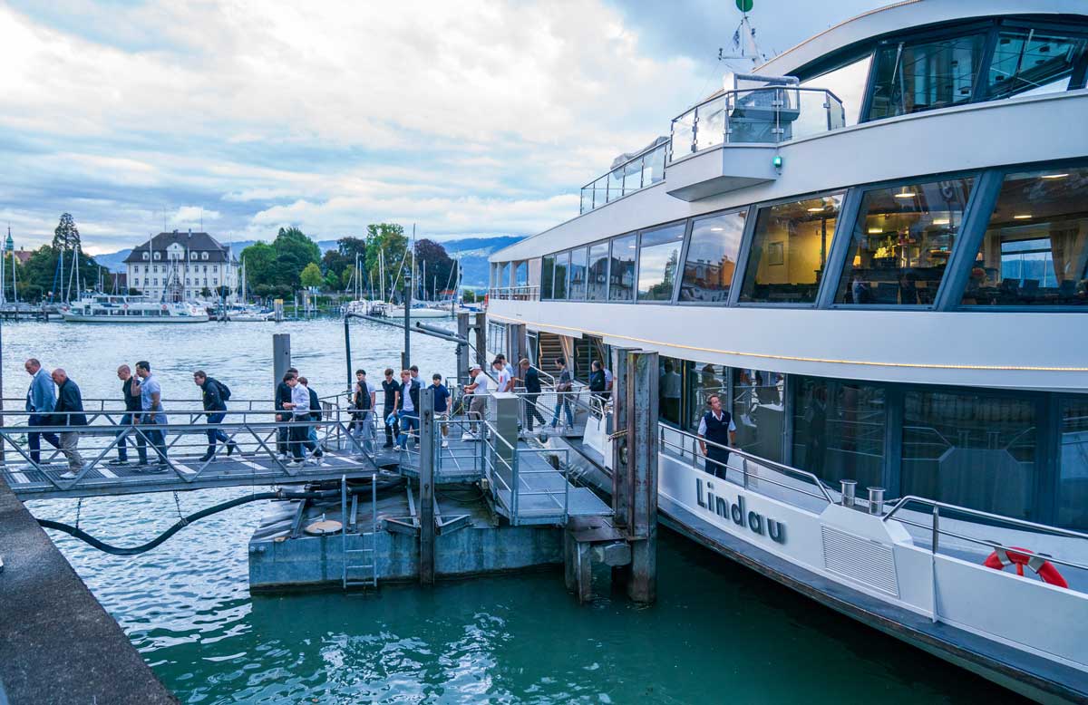 Der Startschuss fiel mit einem lockeren Empfang in unserer Holding. In entspannter Atmosphäre wurden erste Gespräche geführt, Kontakte geknüpft und natürlich auch gemeinsam geschlemmt – ganze 32 Partypizzen sorgten für einen genussvollen Auftakt und gute Stimmung. Gegen Mittag erwartete die Teilnehmer:innen dann ein echtes Erlebnis: eine exklusive Schiffstour über den Bodensee nach Lindau. Die Überfahrt verwöhnte alle mit traumhaftem Alpenpanorama und einzigartigen Ausblicken, während genug Zeit blieb, sich in entspannter Atmosphäre auszutauschen und das Miteinander zu vertiefen.