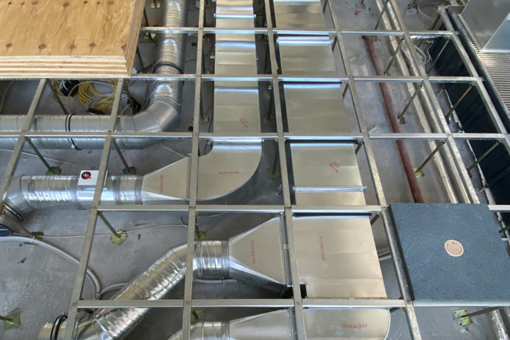 • Lüftungssystem mit knapp 400 m2 Luft­kanal und integrierten Komponenten