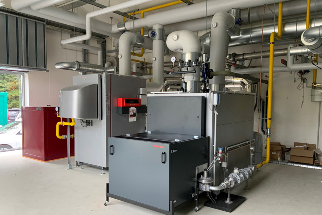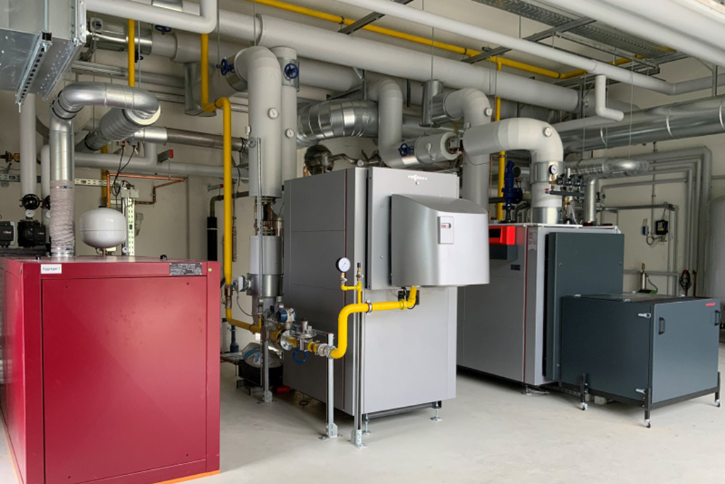 • Gas-Brenn­wert­kessel und Nieder­temperatur­kessel mit Zweistoff­brenner (je 600 kW)